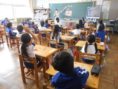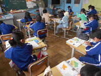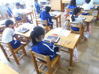 朝の読み聞かせ、今日は担任ではない先生の読み聞かせでした。