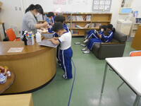 図書委員会は、読書週間の準備。ポスターや景品作りをします。