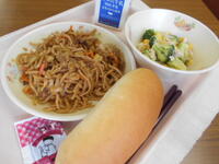給食のときに、放送委員がお昼の放送をしに来ます。3人一組で、たいてい音楽を流します。終わり頃にまたやってきて、片付けや歯磨きをしましょうというアナウンスをします。
