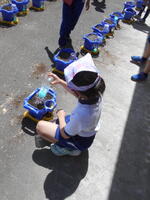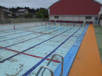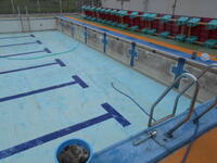 プールの水を抜きました。職員の他に、6年生の有志の働きで、砂利などをすべて拾いました。
