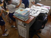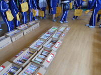 図書の受付。小百小から絵本などたくさん引っ越しました。