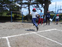 5年体育、ハードル走。自分の目標を決めるため、まず、はじめの記録を計ります。
