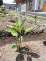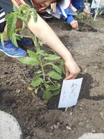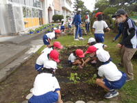 御近所の方にサルビアをいただいたので、1年生が花壇に植えました。