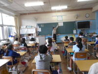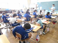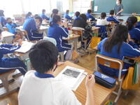 6年社会、江戸時代の学問について。実習生が授業をしています。明後日が最終日です。
