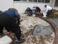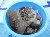 実は、今年、昨年とも掃除の前に水を抜くと、石がありました。ところが今回は、きれいにしたばかりのところに大量の石でした。