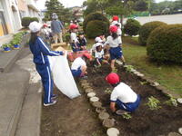 2~4年生は、花壇と校庭の除草、5・6年生は、花壇と農園の除草をしました。