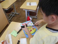 2年図工、箱とストローを使って動くおもちゃを作ります。