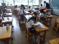 6年書写、硬筆の学習が早く終わったので、総合の調べ学習です。観光地である日光、鎌倉、ディズニーランドについて調べます。
