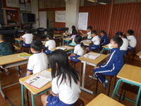 3年音楽、合唱です。元気な声で楽しく歌います。