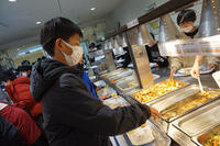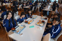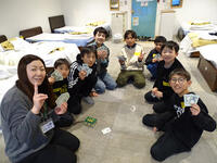 日光市内の他の小学校(大沢小、今市第三小、落合東小、落合西小など)と一緒に大きな食堂で食べます。そのあとは午後の活動「館内ウオークラリー」、夕飯後は体育館で轟小学校と合同でドッジボールをしました。今回、活動はすべて轟小と一緒です。