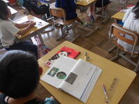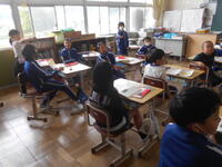 3年国語、一人一文ずつ交代して全文を読みます。どこから始めるかじゃんけんで決めます。