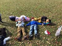 学校でも秋をたくさん探してきましたが、今回は自然豊かな公園へ行ったので、葉っぱや木の実を山ほど拾いるんるん気分で学校へ帰ってきました。トカゲやバッタにも出会えたようでした。公園ですれ違った地域の方には元気に挨拶をする様子が見られました。