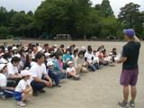 今年も、そのみどりっ子活動をがんばっていくための結団式が行われました。全校生を14班に分けて、1年生から6年生までが一緒になって活動を進めていきます。緑化委員長を兼ねる団長から、全校生にあいさつがあり、発足しました。