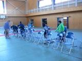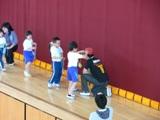 交通安全についてお話を聞いた後、登校班で模擬道路の歩行の訓練を行いました。
