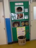 9月23日(金)に作品が完成、「全校生に見てもらいたい。」と2階新校舎通路のプレイルームに展示しました。その後、みんなにこにこ笑顔の記念撮影をしました。