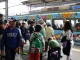 「帰りたくないなあ。」公園を振り返りながら、バスに乗る子どもたち。