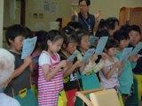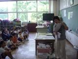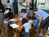 【3日目:低学年・中央昇降口外で。情報委員会の子どもたち。】