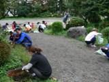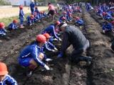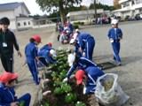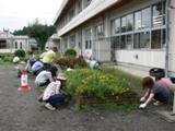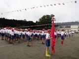 運動会当日の18日は、早朝から、教職員が総出で校庭の水を吸い取ったり、