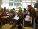 1年生の英語の授業の様子です。ハロウィンの悪霊の(?)