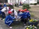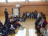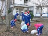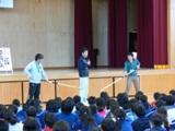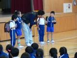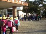 低学年昇降口、中央昇降口の外中の3カ所であいさつ運動をすること。