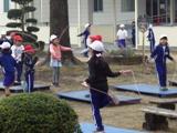 はだしの広場では、子どもたちがなわ跳びをして遊んでいました。