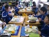 いつもと違う給食に、6年生は大喜びでした!みんないい笑顔です。