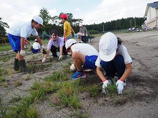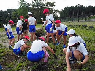 5月10日(金)晴天の中、5年生はJAの職員のみなさんと一緒に田植え体験を行いました。初めのうちは、こわごわと泥の中を移動していた子供たちも、だんだんと慣れて、集中して取り組んでいました。とても貴重な体験をさせていただきました。稲刈りをする日がとても楽しみです。