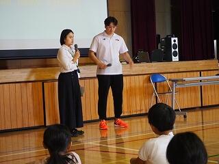 5月8日(水)新入生歓迎会が行われました。今年度初めての児童会主催の行事でした。たて割り班ごとに自己紹介や名刺交換を行った後に、150周年を迎える大室小に関する〇×クイズや男の先生たちがオニになって子供たちが逃げる「ふやしオニ」(150秒間)は、大いに盛り上がりました。最後に1年生の皆さんは、上級生からメダルをかけてもらって嬉しそうでした。1年生に喜んでもらえるように、事前準備を頑張っていた児童会の皆さんが大活躍していました。楽しい1年生との交流の時間がもてました。