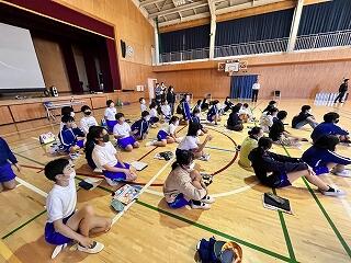 1日目は、塩づくり活動を行いました。塩水を海から運ぶのが大変そうでした。二日目は、オリエンテーリング、砂の造形、ナイトハイクととても活動的な一日でした。何度も砂浜に降りたくさん貝殻を拾いました。三日目は、アクアワールドに行きました。活動班ごとに海の生き物を見たり、おみやげを買ったりしました。とても充実した三日間になりました。