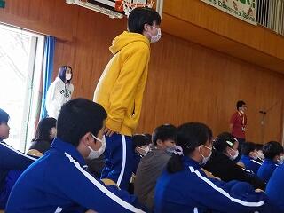 授業後には、各学年ごとに学年懇談会が行われました。今年一年間の学習や学校生活への取組について説明がありました。特に今年度は、学力向上プロジェクトの一環として「スタディサプリ」利用した基礎学力の定着についての説明がありました。全校あげての取組に対する保護者の皆様の御協力をよろしくお願いいたします。