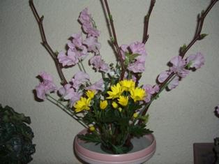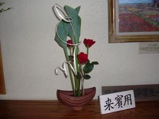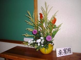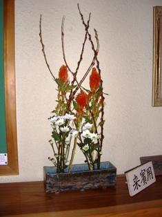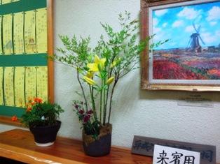 来賓玄関には、生け花が3杯、それぞれの個性を見せながら