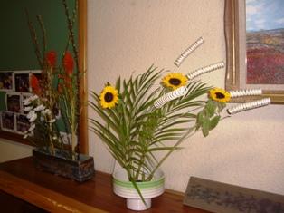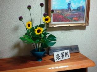 新しい来賓玄関の生け花には、夏の花ヒマワリがあしらわれています。
