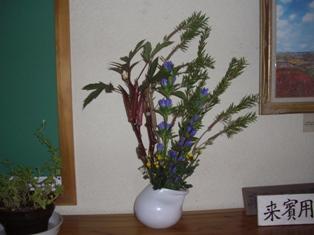 今回の生け花には、杉の葉が見られます。花粉のせいで