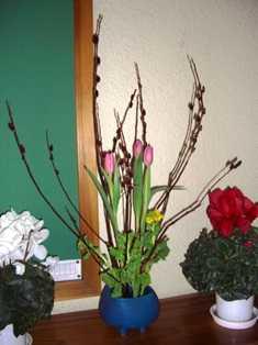 チューリップとネコヤナギの組み合わせが、「春間近」を