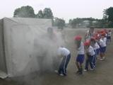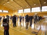 特別日課にして清掃時間を普段より多く確保し、教室の床の水拭きに