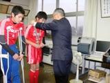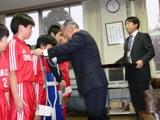 日光市長斎藤文夫様が来校し、B.Sさんに直接贈呈の手紙とともに