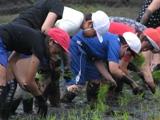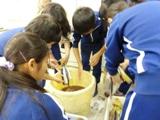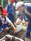 3校時に、5年生と6年生全員で、さつまいもの苗が植えてある