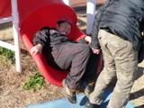 「首が柔らかい!」と言いながら、ちょっと恥ずかしそうに抱いていました。