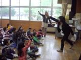 途中、お話の中の掛け声や歌に合わせて体を動かす時間もあり、と