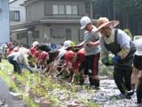 夏休み中の農園周りの雑草の刈り取りは、労務主事さんを中心と