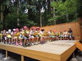 春には、みんなでバスに乗って、遠足に行きます。夏には、体育