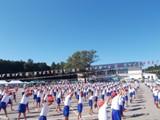 児童の皆さん。校長先生が話した「欠席ゼロに!」の言葉を