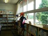 〔図書室で尺八の体験中 丁寧に教えてくださいました〕