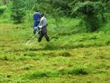 地域の方々から、かまの使い方や稲の刈り方をていねいに教えて