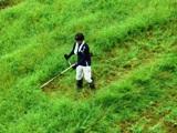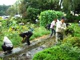 畑中に伸びていたつるを鎌で切って、みんなで運んでトラックに乗せて・・・