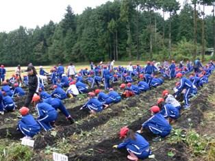 晴れ渡る青空の下、地域のボランティアの方々の御指導をいただきながら、