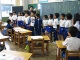 この日は強風だったため、教室に戻ってから、校内放送で校長先生の指導講評に