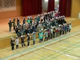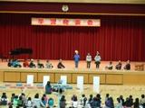 ・あいにくの雨のため、体育館で行いました。司会、代表児童のあいさつともに大変立派