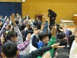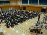 児童の皆さん。校長先生が話した「欠席ゼロに!」の言葉を
