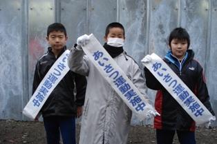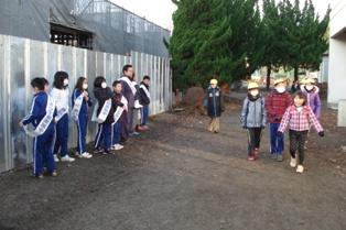 いうスローガンの下、朝の登校時間に低学年昇降口前で
